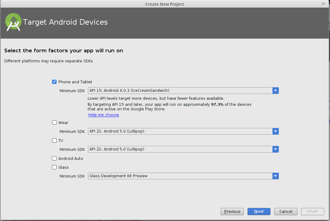 Σαν target Android Devices δίνουμε το μικρότερο api και ο λόγος είναι ότι όσο πιο μικρό api τόσο πιο πολλές οι συσκευές στις οποίες μπορούμε να φορτώσουμε την εφαρμογή μας.