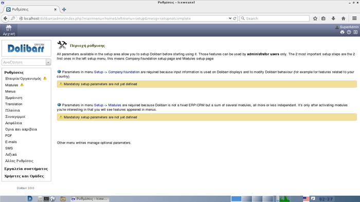Σε επόμενο άρθρο θα δούμε κάποιες βασικές ρυθμίσεις του Dolibarr για το πώς ενεργοποιούμε πρόσθετα όπως προσφορές, παραγγελίες, αποθήκη, ημερολόγιο, τιμολόγια.