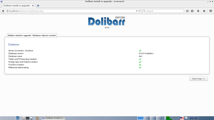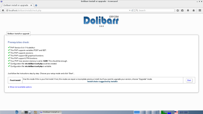 Αφού ολοκληρωθεί η εγκατάσταση το προεπιλεγμένο πρόγραμμα περιήγησης θα πρέπει να ανοίξει τη σελίδα εγκατάστασης. Αν όχι, μπορείτε να ανοίξετε το πρόγραμμα περιήγησης σας στο http://localhost/dolibarr/ και το πρόγραμμα εγκατάστασης θα ξεκινήσει.