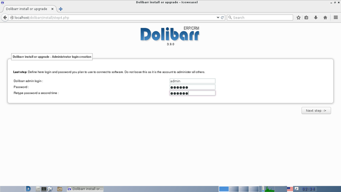 Στην τελική οθόνη θα σας ζητηθεί να εισάγετε το όνομα χρήστη/κωδικό του διαχειριστή. Τώρα μπορείτε να ξεκινήσετε την προσαρμογή του Dolibarr. Όλα τα πεδία με το θαυμαστικό και έντονα γράμματα είναι υποχρεωτικά (Εικόνα 9, Εικόνα 10, Εικόνα 11).