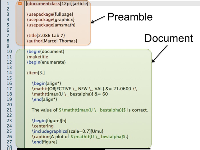 Το \preamble είναι ο κώδικας που ξεκινά από το \documentclass και εκεί προσθέτουμε μέσω του ορίσματος \usepackage τα πακέτα που θέλουμε, έτσι ώστε να δώσουμε επιπλέον χαρακτηριστικά ή να εισάγουμε ειδικούς χαρακτήρες, αρχεία ή εικόνες. Αφότου ορίσουμε τα πακέτα είμαστε έτοιμοι γράψουμε κείμενο. Ο κώδικας του \preamble τελειώνει εκεί που ξεκινάει το \begin{document}
