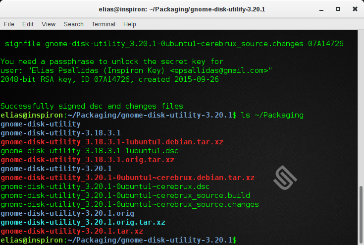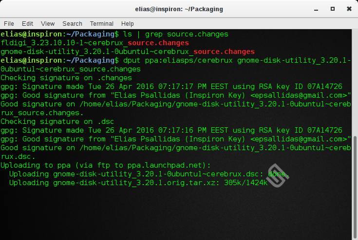 Εφόσον όλα έχουν πάει καλά, θα δούμε στο αποτέλεσμα της εντολής πως τα πακέτα στάλθηκαν με επιτυχία στο Launchpad. Στα επόμενα λεπτά, θα λάβουμε ένα e-mail από το Launchpad που θα μας ενημερώνει πως το πακέτο που στείλαμε είτε απορρίφθηκε για κάποιο λόγο, είτε έγινε δεκτό. Αν έχουμε ακολουθήσει σωστά τη διαδικασία του packaging, θα πρέπει να γίνει δεκτό.