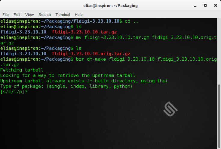 1. Tο tarball «ΟΝΟΜΑΠΑΚΕΤΟΥΕΚΔΟΣΗ~tag.debian.tar», το οποίο περιέχει την νεότερη έκδοση του λογισμικού, μαζί με τον κατάλογο «debian» ενημερωμένο, δηλαδή, με όλες τις αλλαγές που εφαρμόσαμε στα προηγούμενα βήματα.