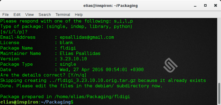 Παρατήτηση: Σε αυτό το παράδειγμα, δεν χρειάστηκε να επεξεργαστούμε το αρχείο «debian/rules», περίπτωση που σχεδόν ποτέ δεν ισχύει. Στην δημιουργία ενός πακέτου, αυτό το αρχείο θα μας απασχολήσει ιδιαιτέρως. Όμως, δεν θα γίνει αναφορά στην λειτουργία του στο παρόν άρθρο.