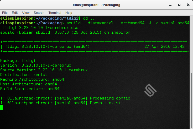 # Mail address where logs are sent to (mandatory, no default!) $mailto = $ENV{USER}; # Name to use as override in .changes files for the Maintainer: field # (mandatory, no default!). $maintainer_name='ΟΝΟΜΑ ΕΠΙΘΕΤΟ &lt;E-MAIL&gt;'; # Default distribution to build. $distribution = "xenial"; # Build arch-all by default. $build_arch_all = 1; # When to purge the build directory afterwards; possible values are"never", #"successful", and "always"."always" is the default. It can be helpful # to preserve failing builds for debugging purposes. Switch these comments # if you want to preserve even successful builds, and then use #"schroot -e --all-sessions" to clean them up manually. $purge_build_directory = 'successful'; $purge_session = 'successful'; $purge_build_deps = 'successful'; # $purge_build_directory = 'never'; # $purge_session = 'never'; # $purge_build_deps = 'never'; # Directory for writing build logs to $log_dir=$ENV{HOME}."/ubuntu/logs"; # don't remove this, Perl needs it: 1;