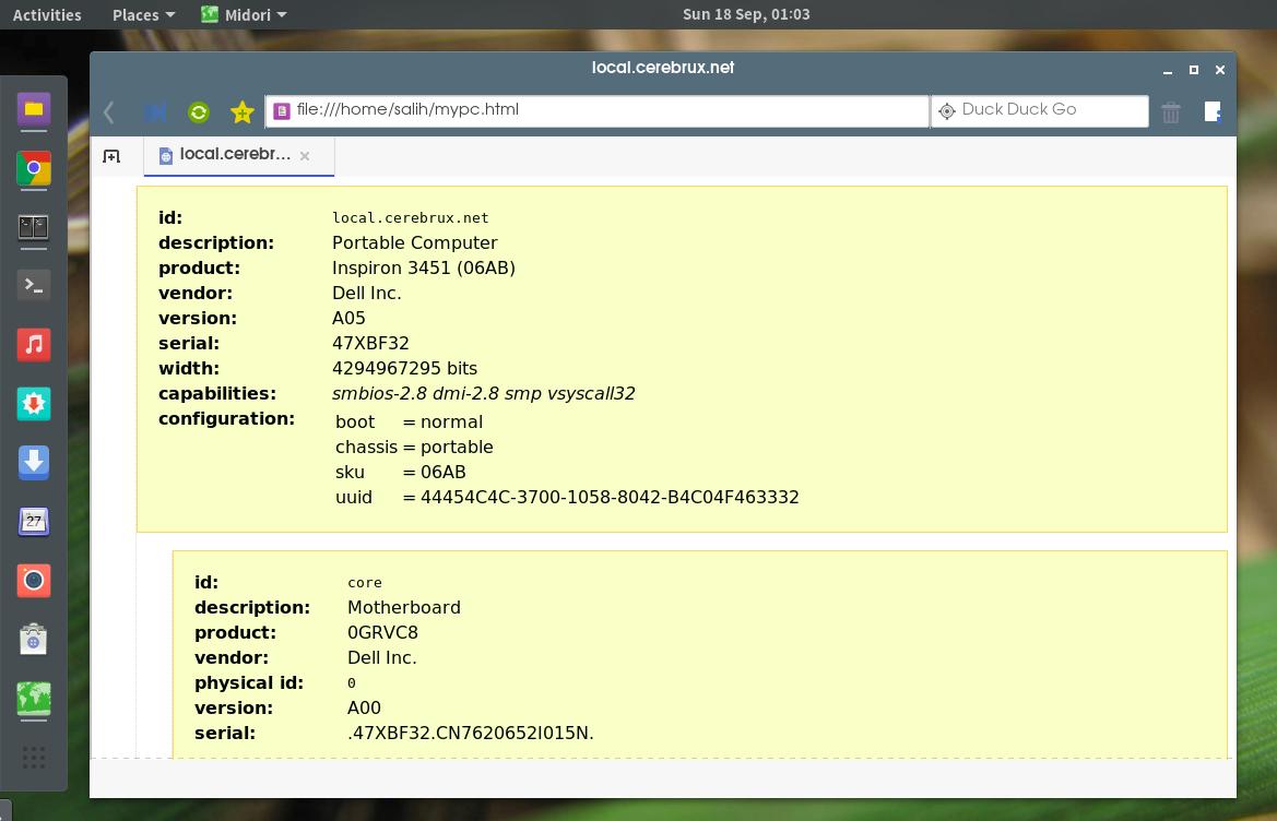 Η εντολή αυτή παρέχει μια «εξουθενωτική» λίστα με πληροφορίες συστήματος για το υλικό ( hardware ) του υπολογιστή μας. Διαθέτει μια πληθώρα παραμέτρων και την δυνατότητα να εξάγει τις πληροφορίες σε μορφή html για να το ανοίξετε με τον browser σας: