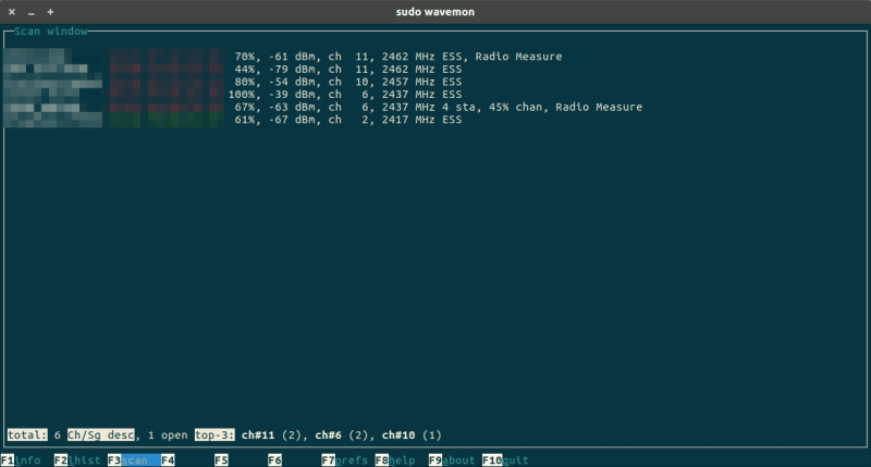 Το wavemon έχει στα function keys πολλές διαφορετικές πληροφορίες δεδομένων που μπορούμε να συλλέξουμε