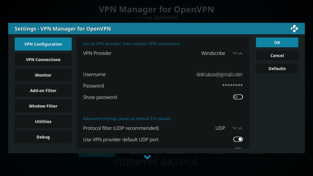 Προσοχή!!! Στη δική μας περίπτωση χρησιμοποιήσαμε πληρωμένη συνδρομή η οποία στο συγκεκριμένο πακέτο παρείχε openVPN προφίλ για αυτό και μπορέσαμε να κάνουμε χρήση του εν λόγω plugin. Αν για κάποιο λόγο δεν μπορείτε και να το χρησιμοποιήσετε είτε γιατί δεν έχετε κάποιο paid plan για VPN ή το VPN σας δεν έχει openVPN προφίλ, δοκιμάστε να ενεργοποιήσετε το vpn εκτός Kodi (δηλαδή να έχετε VPN παντού και όχι μόνο στο Kodi).