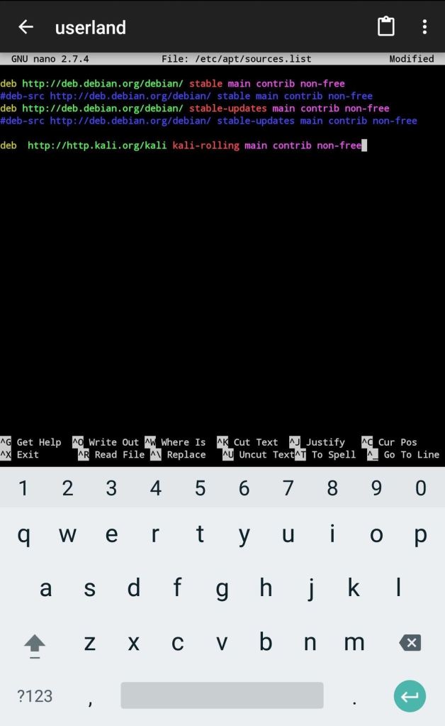 Για να ξεκινήσετε την εισαγωγή του αποθετηρίου Kali Linux, χρησιμοποιήστε το nano για να προσθέσετε το αποθετήριο του Kali στο αρχείο /etc/apt/sources.list.