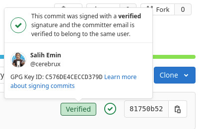 Επιλέγοντας το Verified label σου δείχνει περισσότερες πληροφορίες για την υπογραφή του χρήστη που έστειλε το commit.