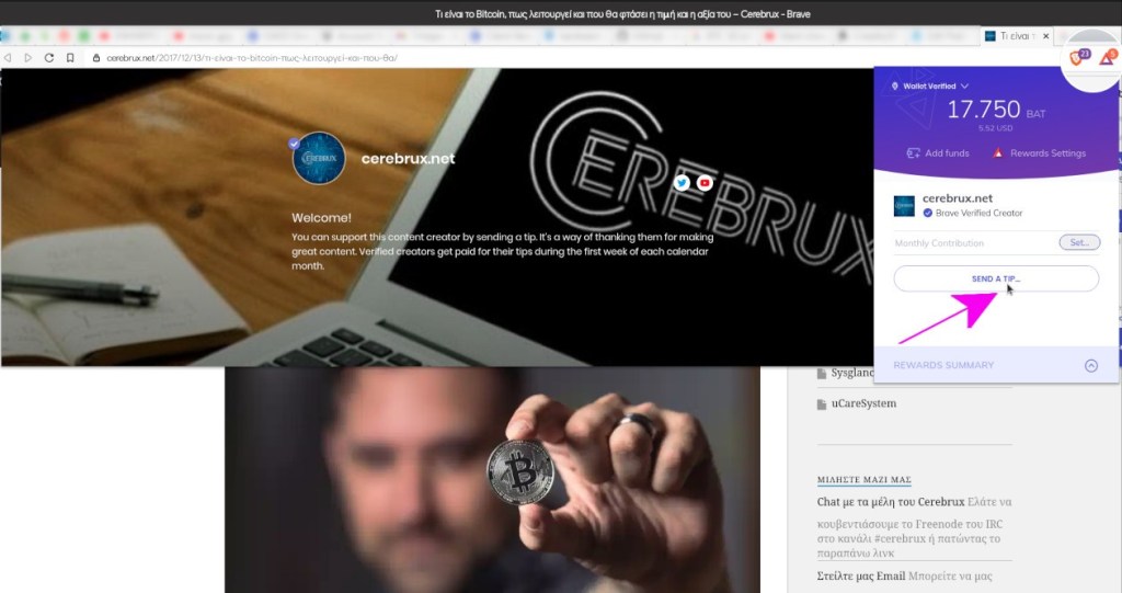 Παρόλο που ο Brave browser «έφαγε κράξιμο» σε δύο σοβαρές περιπτώσεις κακού managment, συνέχισαν να καινοτομούν και να προσθέτουν νέα χαρακτηριστικά όπως πορτοφόλια κρυπτονομισμάτων, να ενισχύουν το υπάρχον σύστημα BAT πληρωμών σε όσους χρησιμοποιούν τον Brave και κάνουν κλικ στις διαφημίσεις (70% κέρδος στους χρήστες, 30% το Brave) ενώ βελτίωσαν αρκετά το σύστημα δωρεάς με το οποίο π.χ. οι αναγνώστες ιστοσελίδων που είναι συμβεβλημένοι με το Brave, μπορούν να κάνουν δωρεά τα BAT που μαζεύουν σε αυτά τα αγαπημένα τους site (όπως το cererbux.net ;)