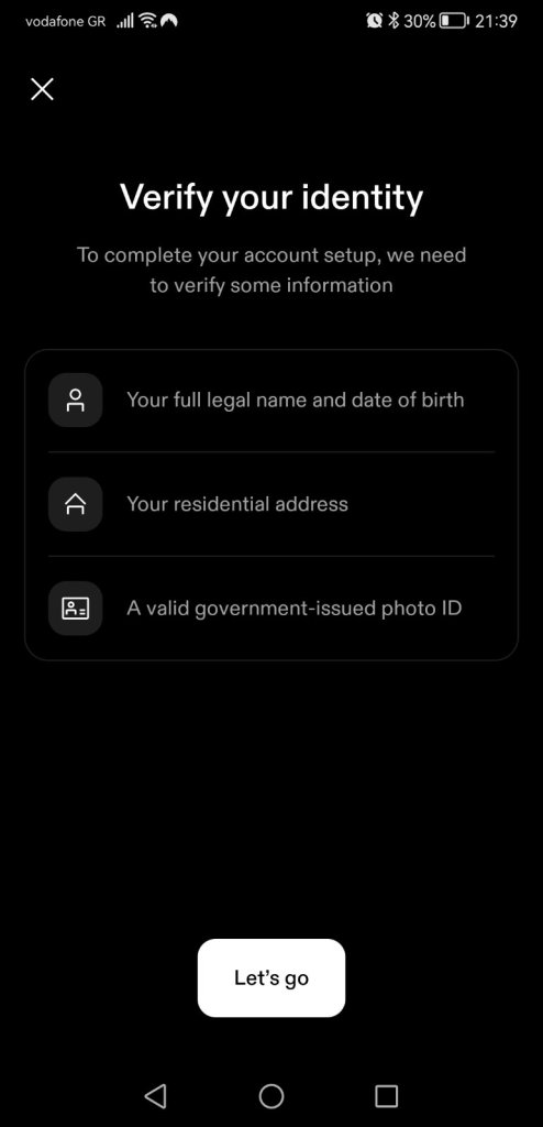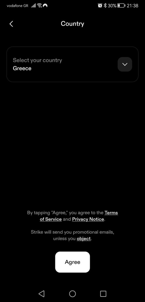Μετά το τέλος του σταδίου (1 εργάσιμη), θα λάβεις επιτέλους ένα τελευταίο email που σε καλοσωρίζει στο Strike. Όταν θα συνδεθείς στην εφαρμογή, αυτή την φορά αντί για το «verification in progress», θα δεις την παρακάτω οθόνη