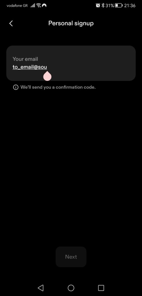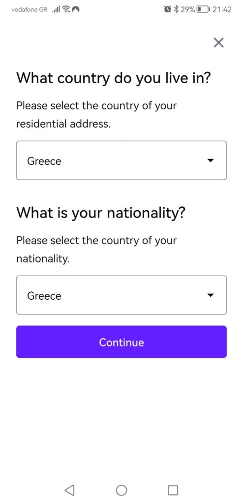 Χρησιμοποίησε μια έγκυρη διεύθυνση email στην οποία έχεις πρόσβαση, καθώς θα σου σταλεί επιβεβαιωτικός κωδικός. Στη συνέχεια, θα σου ζητήσει να αποδεχτείς τις ειδοποιήσεις, να επιλέξεις την Νόμιμη χώρα κατοικίας σου και να αποδεχτείς τους όρους χρήσης.