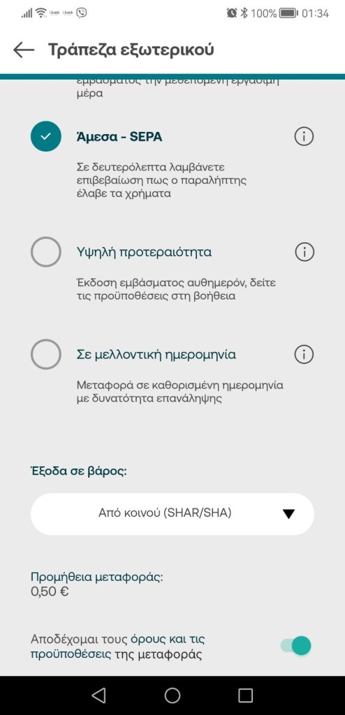 και τέλος επιλέγεις στο ‘Έξοδα σε βάρος‘ απο κοινού. Το κόστος είναι μόλις 50 λεπτά. Αποδέχεσαι του όρους μεταφοράς και επιβεβαιώνεις την συναλλαγή. (αν σου επιτρέπει μπορείς να αποθηκεύσεις την συναλλαγή για να την επαναλάβεις στο μέλλον με ένα κλικ)