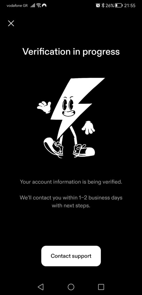 Όταν ολοκληρωθεί η παραπάνω διαδικασία θα σας εμφανίσει ότι η διαδικασία ελέγχου έχει ξεκινήσει. Εδώ θα πρέπει να κάνετε υπομονή μέχρι να έρθει ένα email (12-24 ώρες) σχετικά με τα πρόσθετα έγγραφα που ζητάνε (2ο στάδιο).
