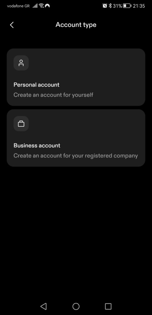 Άνοιξε την εφαρμογή και πάτα Sign Up. Στη συνέχεια επιλέγεις Personal Account