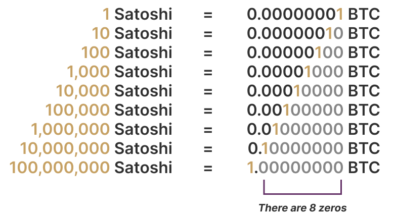 Αν έχεις 1 Bitcoin, μπορείς να πεις ότι έχεις 100 εκατομμύρια sats, ή αν έχεις 100 χιλιάδες satoshi (περίπου 100€ με σημερινή ισοτιμία) τότε μπορείς να πεις ότι έχεις έχεις 0.001₿